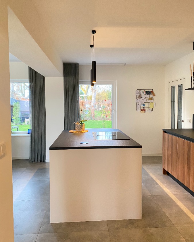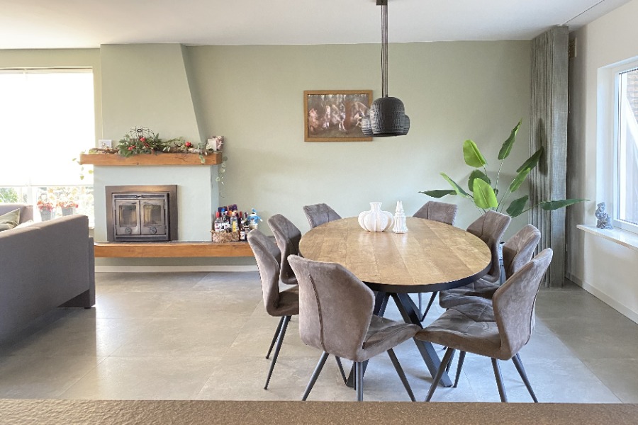 Na het zien van de verschillende mogelijkheden en ontwerpen konden de knopen snel doorgehakt worden. De open haard bleef staan en er werd gekozen voor de leef keuken.